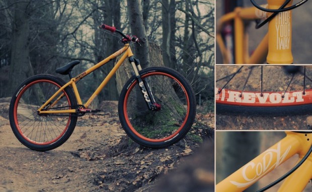 Marcel is on the Dartmoor Cody again. This frame is made from seamless multi butted Cro-Mo 4130 steel, which can be slightly more forgiving on those big landings; also it’s slightly shorter at the back end than the Player.