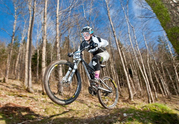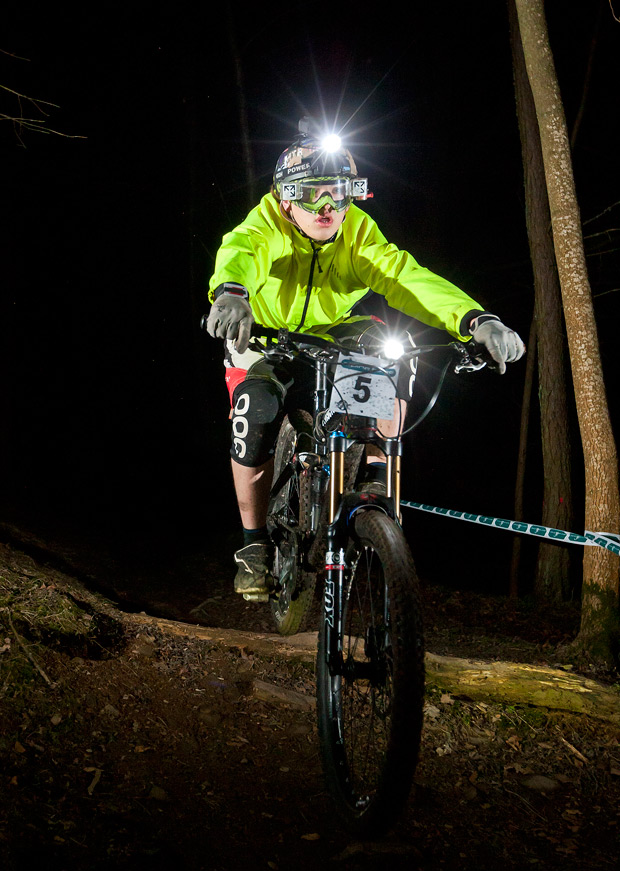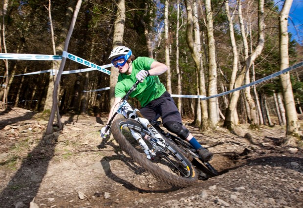 The second round of the Alpine Bikes sponsored 2013 Innerduro Series took place on Saturday 2nd March at Forestry Commission Scotland’s 7stanes Innerleithen mountain bike trails at Traquair Forest. The event, organised by Innerleithen MTB Racing, was again completely sold out weeks in advance as some of the best Enduro riders from across Europe descended on Innerleithen for this exciting style of mountain bike racing. Riders followed a course to the top of the forest before riding two special timed stages over technical rooty and rocky terrain, with a climb back to the top between stages. Following a rest period as the sun set, riders then repeated the route in the dark (with the aid of lights!). The cumulative time for the predominantly downhill stages would determine the winner.