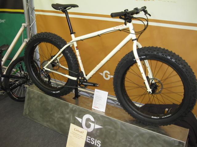 Staying on survival but not so much Dirt ground, adventure biking is taking off. Genesis sprung a surprise Fatbike on everyone (which now appears to be the next big thing as other brands are planning them) I had seen photos all over the net before I got to the show of this fatboy. The hip flasked one is the prototype Caribou, the cream one is production, compelete bike is £1499.99 and if you think DH tyres are pricey, fat tyres are around £70-£150 each. And yes I would race that prototype.