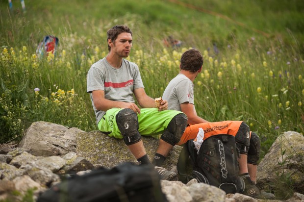 The boys getting a bit of lunch between stages – Photo: Ben Winder