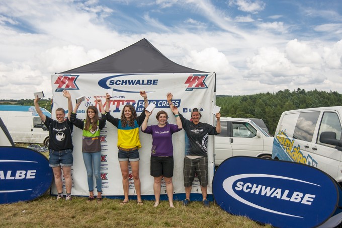 In elite women, Tyde D’Souza survived the B final to win and take 5th overall for the day. It was Cara Murray, Liz Fowler, Heather Kay and Clare Curtis in the final. Cara got the snap and led all the way to the last turn. A great move by Liz Fowler gave her the lead and she held on to the finish line to take her first ever Schwalbe British 4X win. Murray was in 2nd followed by Kay and Curtis.