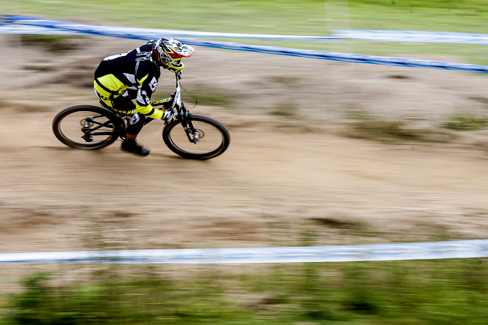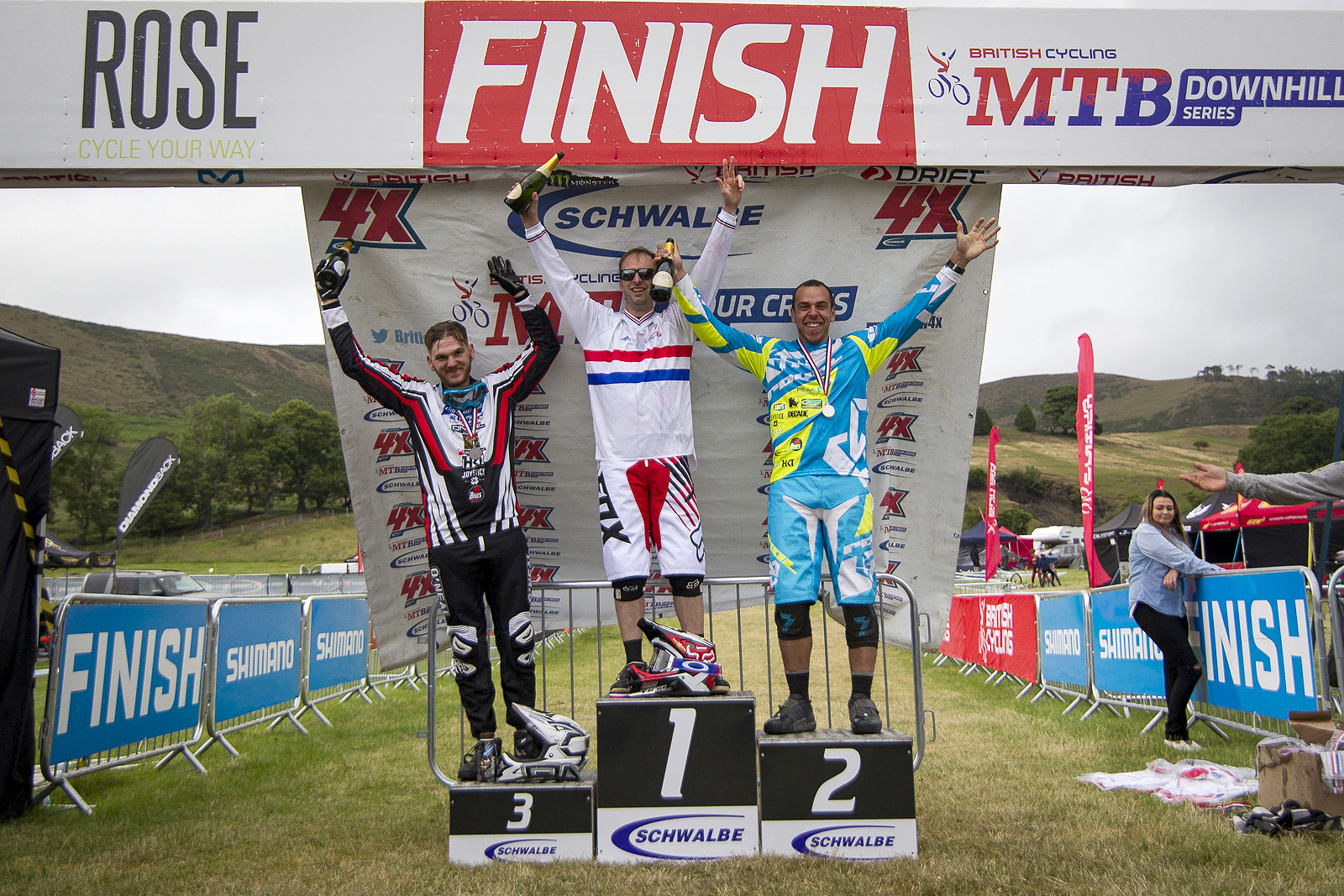 At 17.30 the senior riders lined up for their timed qualifying runs. Going in reverse order to their national ranking, the pace was going to get quicker as seeding progressed. Duncan Ferris set the early pace with a run that looked faultless. Luke Cryer, Alex Metcalfe and Will Evans were unable to beat Duncan’s time. Then Nathan Parsons nailed a great run to take over the hot seat. Last rider down was defending Champion Scott Beaumont. Boom Boom rode smooth and precise to claim the fastest time by 0.5. So with the riders all qualified and the brackets decided, it was time for racing.