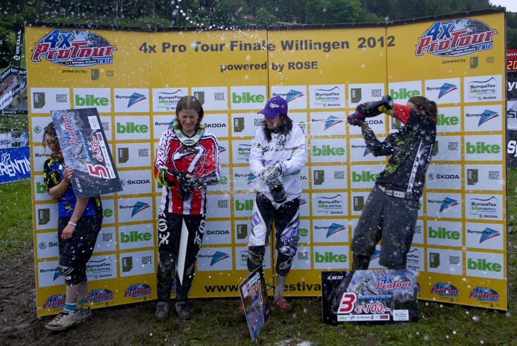 In the womens final, Anneke Beerten lined up against Celine Gros, Lucia Oejens and Steffi Marth. With the overall title on the line, Anneke got the snap and just did not look back. Anneke hit the pro line doubles and took the win which was also enough to give her the 2012 4X ProTour overall title. 2nd went to Lucia, 3rd was Steffi and unfortunately Celine Gros crashed out of the race. Celine has had a fantastic year and this was enough to give her 2nd overall ahead of Katy Curd who finished 5th today, enough for 3rd overall.