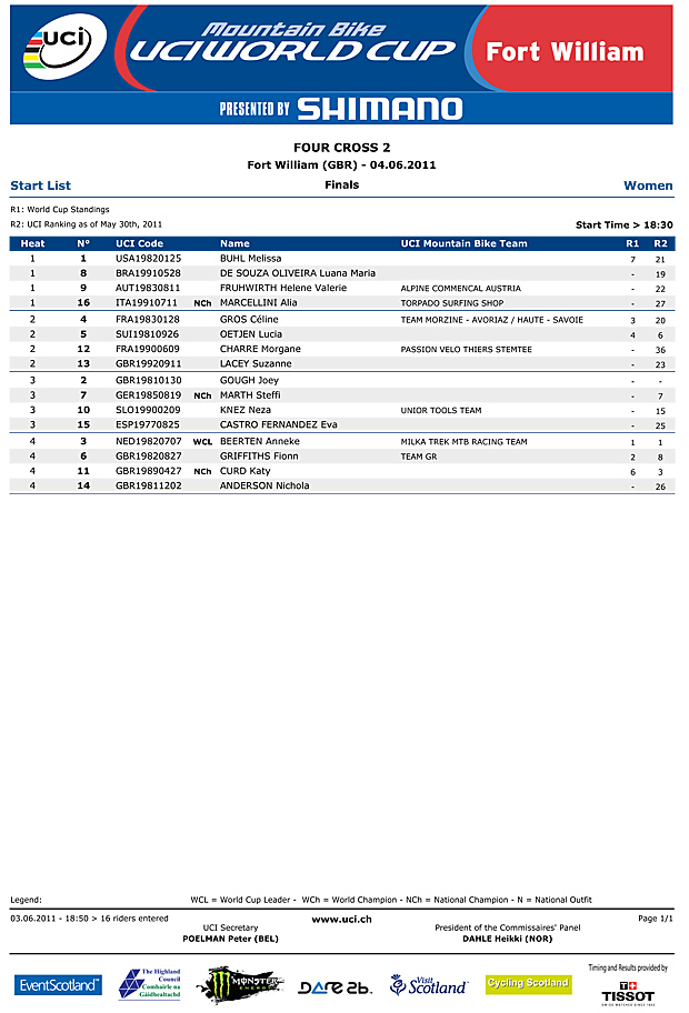 Anneke Beerten un clipped out of the start and had to roll the first straight. Joey Gough had a great return to WC 4x with a great 2nd spot. Katy Curd had a rear flat.
