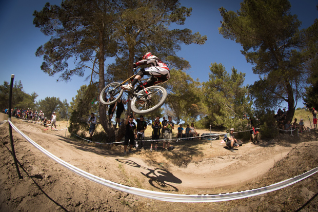 Aaron Gwin wins the Sea Otter downhill on his Specialized Enduro 29er by 0.01 of a gnat’s cock from Mick Hannah.