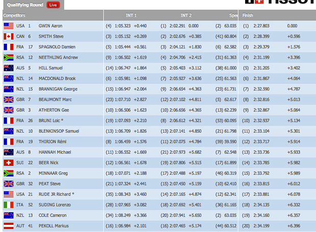Greg Minnaar also lost time inbetween split 1 and 2.