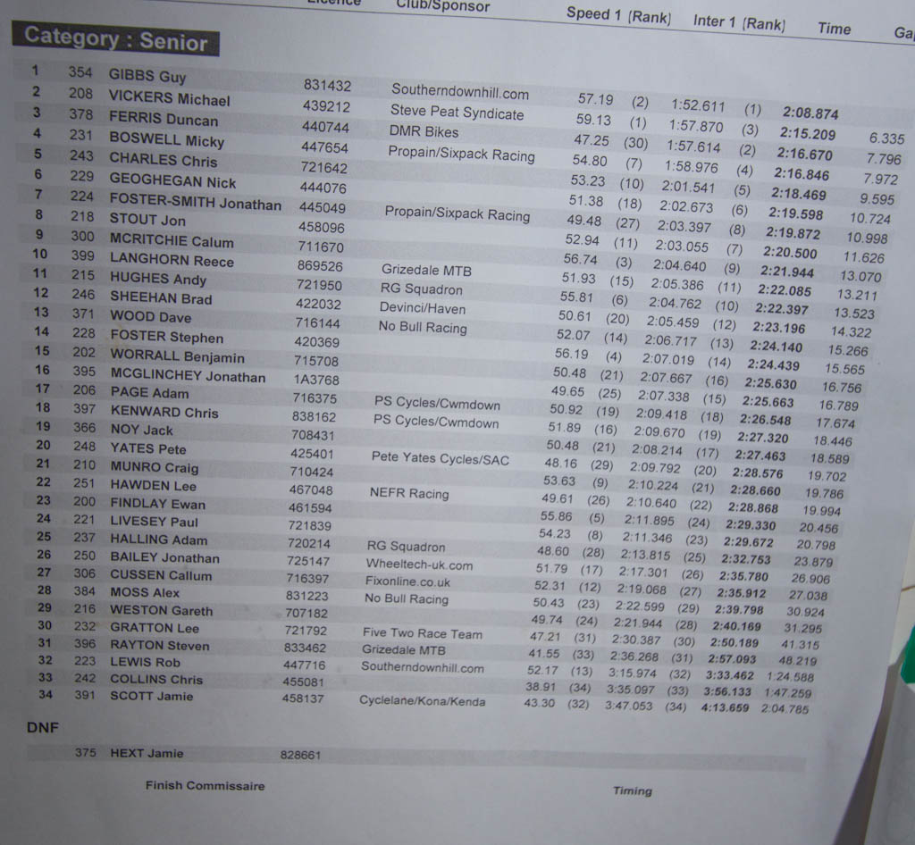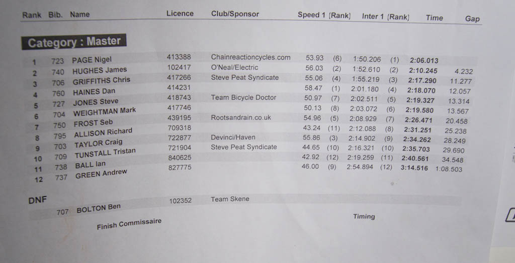 The weather took a turn for the worst after a dry Saturday. Just as the Elites were heading up for qualis on Sunday morning the heavens opened at a time when most riders were on dry tyres with no tear offs or mud deflectors (posh name for mud guard). Carnage!