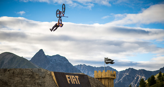 Double backflips are a pretty gnarly to throw in competition and we have seen them before on hardtail but getting two rotations in on bike that weighs in on around the 30lb mark, his Kona Operator, is pretty impressive.