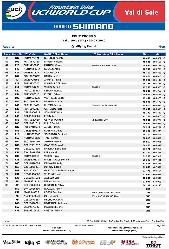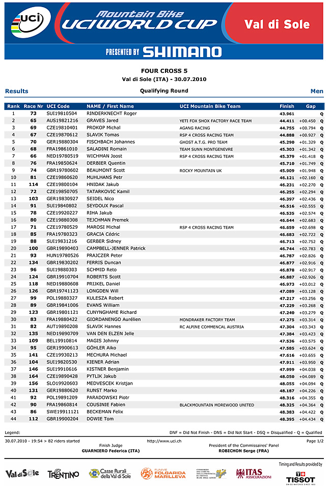 Roger Rinderknecht clocks a 43.961 to take uno position in Val di Sole qualifying.