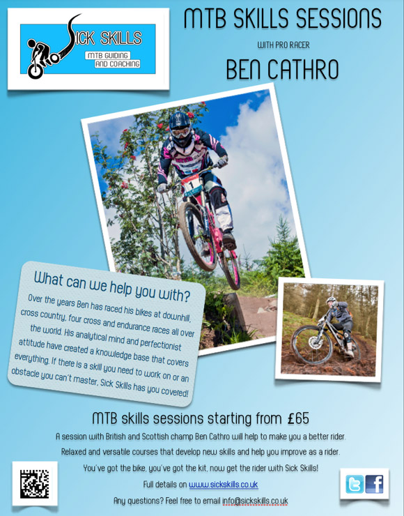 So, Sick Skills is a mountain bike coaching and guiding company that I created. I always knew at some point I would move into coaching the sport that I love and 2012 just felt like the right time. I aim to deliver detailed and thorough courses with a laid back and humorous atmosphere while teaching people all the tips and tricks I’ve learnt over the years. I’ll be running the courses on my local trails near Oban with the plan to expand into other areas. I am also offering a service where I come to your local trails and perform a day session for you and a group of friends.