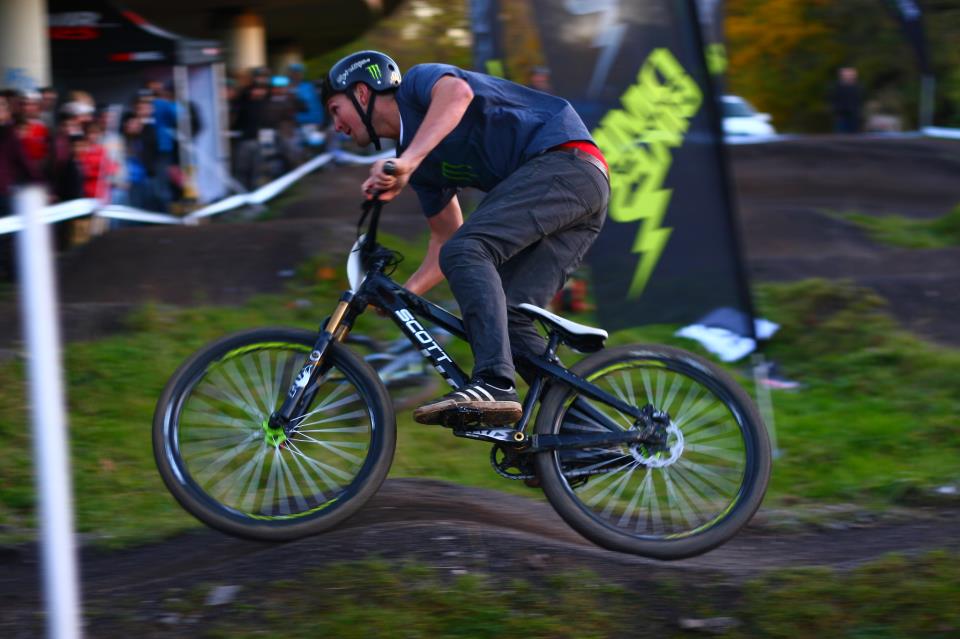 Brendan Fairclough was top qualifier and led the times through the first two rounds. Kerr and Wilkins were also up there, as was local elite Duncan Ferris and the stylish Dan Bateson. Coming into the final run it was all to play for, and Bernard put in an absolutely flawless lap, rinsing all of the corners and maintaining incredible speed to get the first sub-17 second lap.
