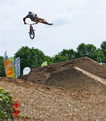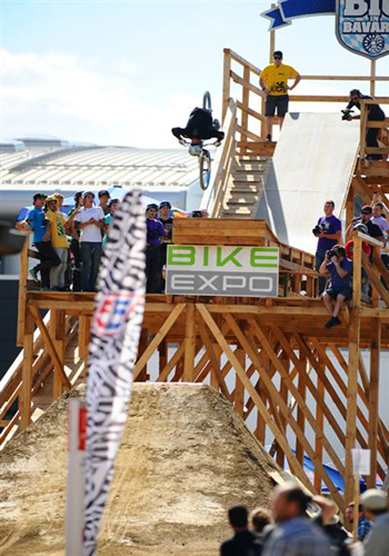 Munich, Germany, July 26th 2010 – Mountain bike rider Martin Soderstrom from Sweden went “BIG” in Bavaria. The Australian Dane Searls dominated the BMX discipline of the international dirt jump competition hosted by the bicycle tradeshow BIKE EXPO. 40 riders from 12 countries made their way into Bavaria’s capital to show their latest tricks on a big sized dirt line. The winners did not only receive 10,000 US Dollars cash, but also a big keg of Bavarian beer.