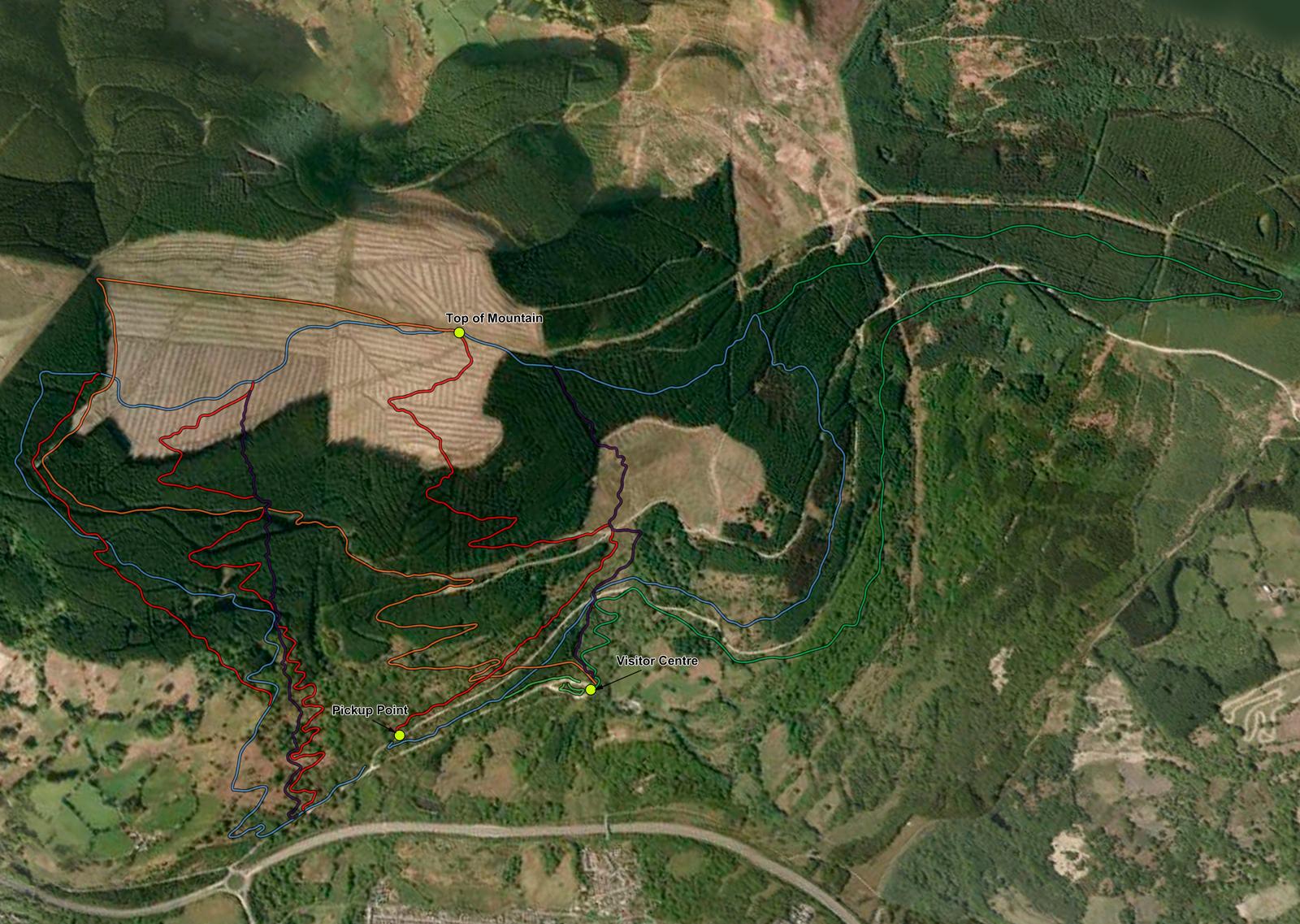 Below is an image showing the trail plan for Bikepark Wales over the next few years. It is important to note that not all of these trails will be built before the park opens in 2013 but BikePark Wales envisage that a good proportion of these trails will be open by late 2013 with more to be added in the coming years. The park team have grand plans to continually evolve the trail offering over the next 10-15 years!