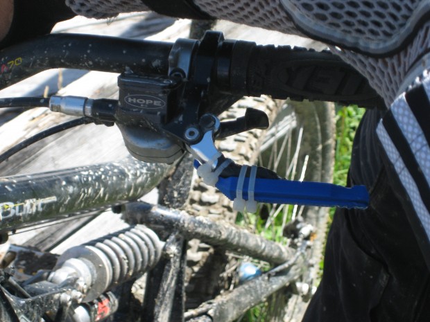 Real trailside innovation here from a guy calling himself Tobias Wild-E-Beast. After sending it off some woodwork in Leogang Tobais’ mate snapped his lever clean in half. That wasn’t going to put a stop to the trip so 4 zip ties and a Park tyre lever later this little gem was born. Sounds like it worked for a few days and its a definite reminder to always have zip ties in your bag.