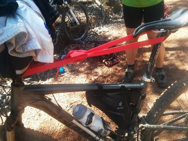 That came in the form of a strap from the stem to the seat post that kept the seat tube from bending and the only downside was “the constant scream of metal on metal.” Not to much to put up with for 40kms! At the next rest stop the guys blagged a fresh bike and set off for the rest of the trip. Some amazing bodging here and a proper, logical solution saved the day.