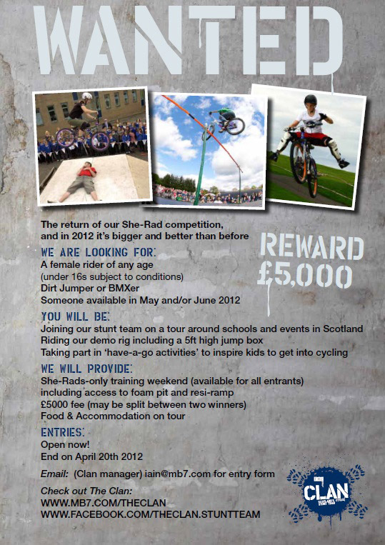 For the second year running ‘The Clan’, Scotland’s Cycle Stunt Team, are on the hunt for a female stunt cyclist to join their team this summer.