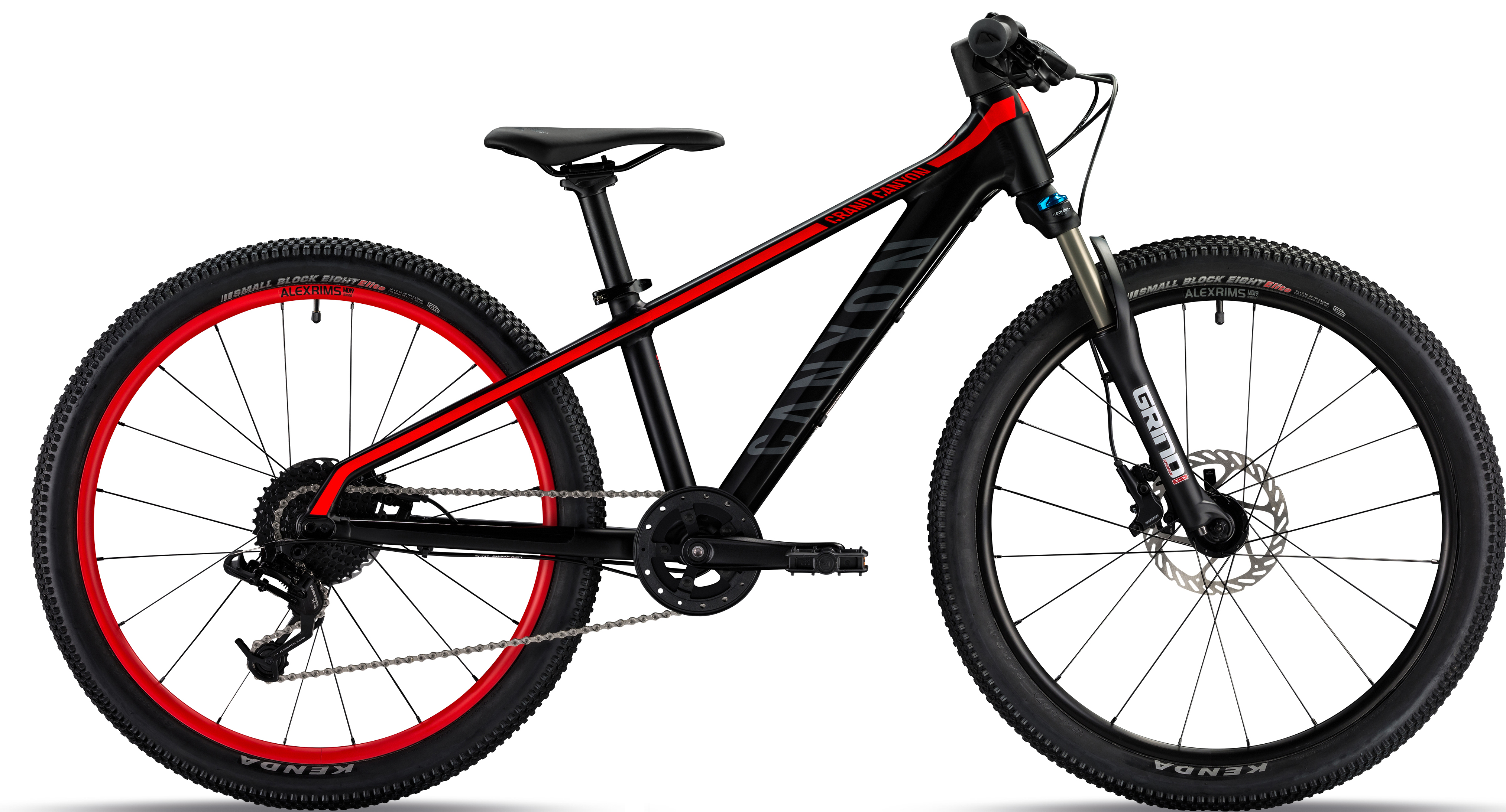 This shrunk version of Canyon’s current Grand Canyon is the only bike in the range to feature suspension – a Spinner Grind air fork pumps out 65mm of travel at the front.
