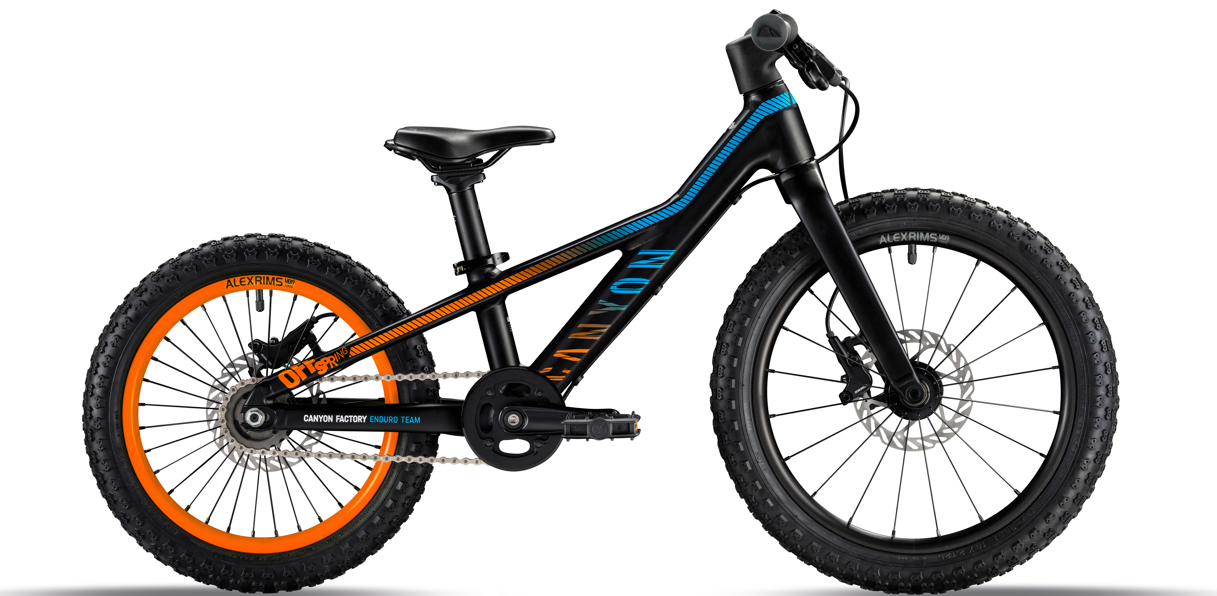 Canyon have done more than just shrink their current bikes though, we love how some real thought has gone into these rides. For example, Canyon has designed 19mm bars with soft, flared grips to keep a young rider’s hands in place. They’ve also put rubber bumpers on the stems of the bikes to prevent bruised knees in case of an accident. Clever stuff but is it bad to say that’s something we’d want on our bikes too!