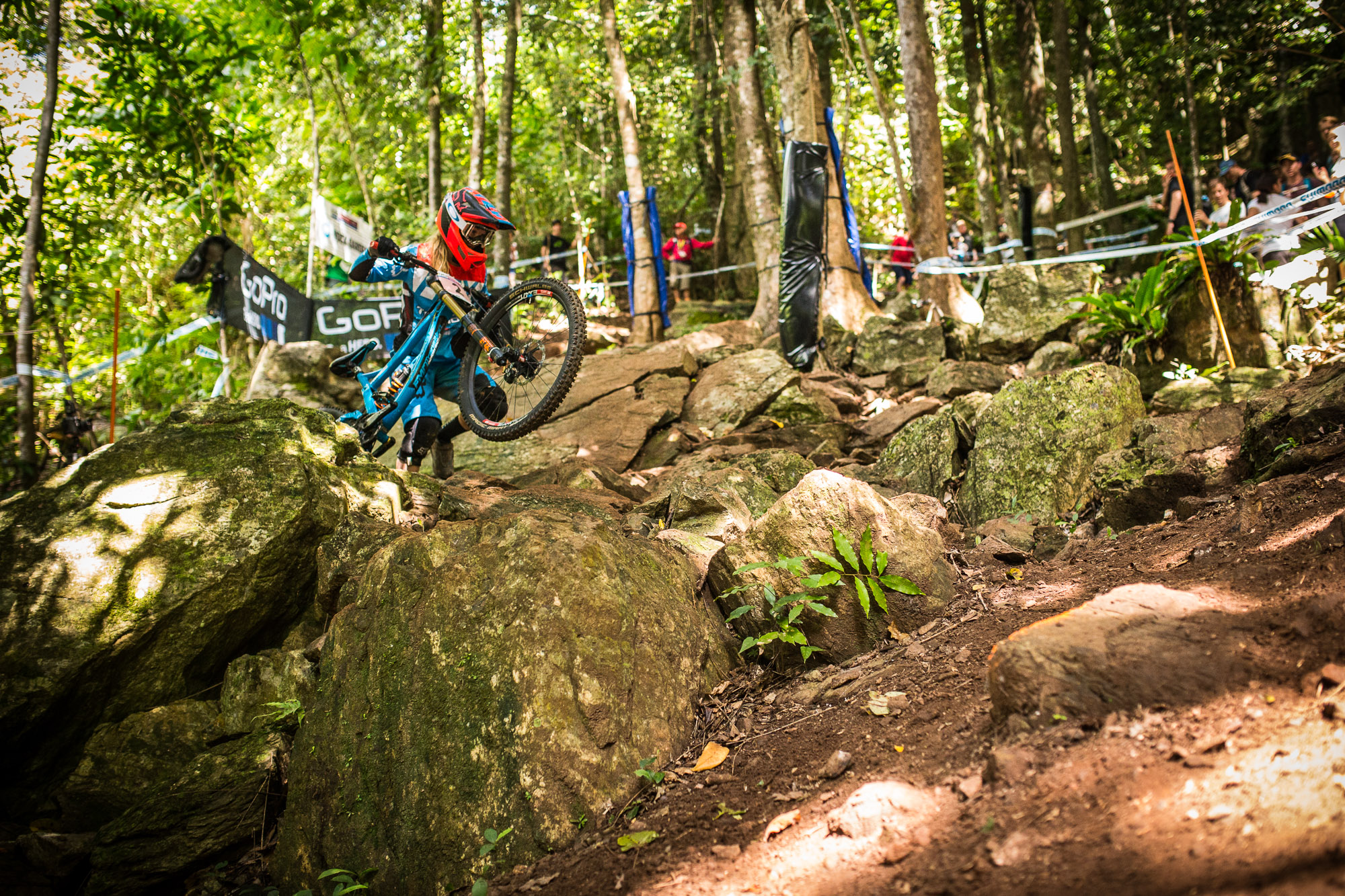 Sun blasted through the jungle canopy today and a dry track allowed the riders to blast through the undergrowth and lay down some scorching times. That didn’t stop a number of riders hitting the deck though – Josh Bryceland, Tahnee Seagrave and Finn Iles were among the casualties.