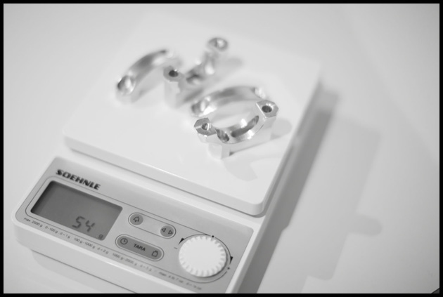 The stem at the moment is just a prototype done by our studio cerio-design. It has an offset of 10mm, weight with no bolts of 54grams and 68grams with bolts, stem and clamps. We use six bolts instead of 8 bolts like normal stems.