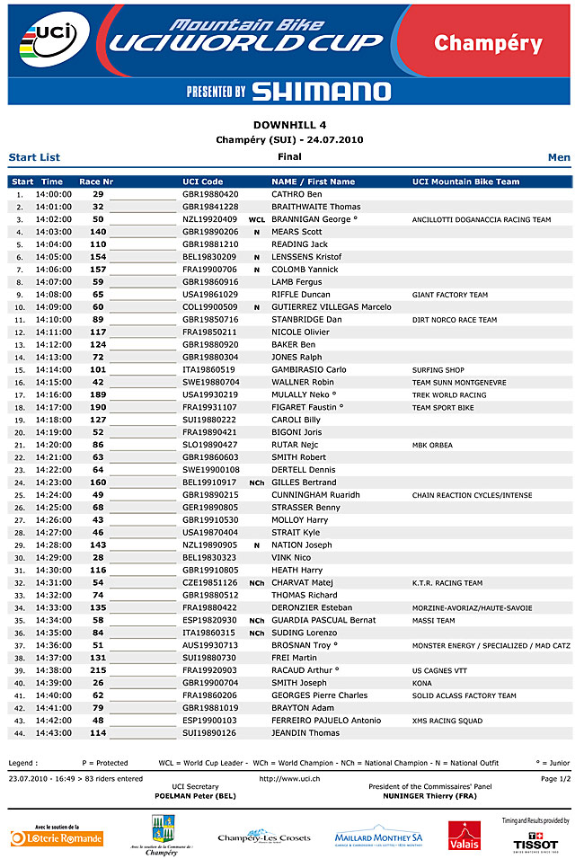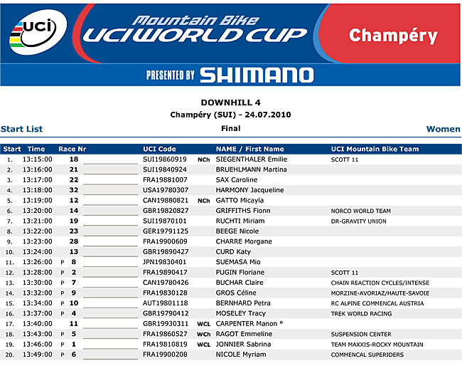 After an amazingly exciting wet and wild qualifying at Champery, here’s how the riders line up for tomorrows finals.