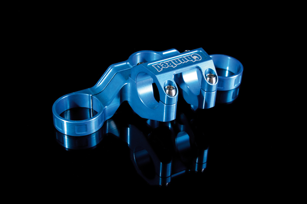 Here at Chunked we’ve developed an integrated top crown and stem to suit the most popular triple-clamp forks. For example, the King Crown for the Boxxer 2010 is only 230grams! What makes this product unique is the clamping system and superior low-ride height. Combine this with the strength of CNC billet machining and wicked styling and you will be riding the ultimate performance & style statement.