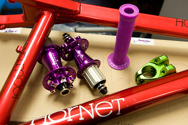 So he brought by some of their goods for us to check out and the initial thoughts are really good. It’s mainly a dirt jump/street brand with a little freeride/slopestyle stuff. The finish on the products was very good and we were all impressed with the quality and the lightness of the frames, especially the steel ones. With good colours, clean graphics and some interesting engineering design as well.