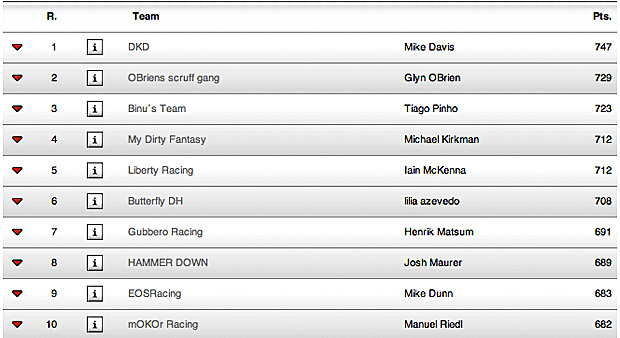 Mike’s team of Aaron Gwin, Tracy Moseley, Fabien Barel, Duncan Riffle and Filip Polc performed super well and is sitting pretty on top of the table.