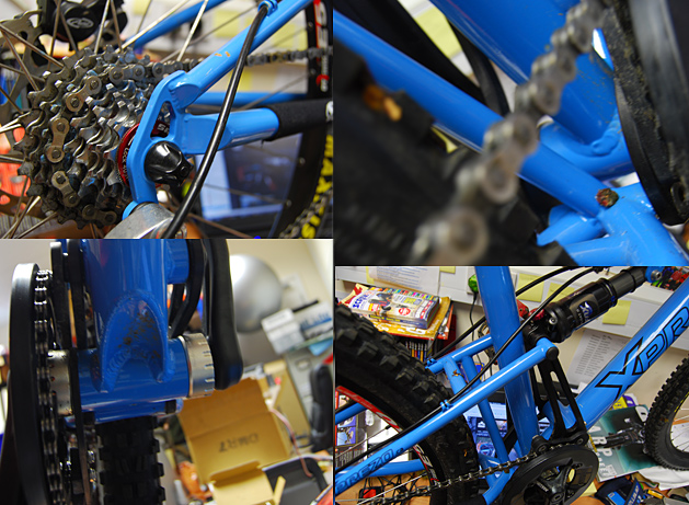 The Gamjam is their 4.5″ (115mm) travel bike with a 66 degree head angle, it weighed 33lbs (14.9kg) on our office scales and frame only will cost you £1545.