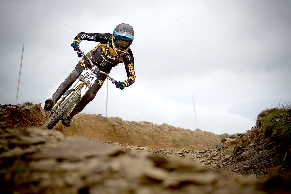 The team, fresh from a few weeks in Europe, got down to round 5 of the BDS at Moelfre, North Wales. A famous track dug out over a decade ago, this weekend she was dry as a bone and dust was carried briskly over the hillside by the fairly strong breeze that made the jumps on course not the most popular features amongst riders! Team rider Jacob Dickson came into this weekend off the back off his first BDS win at Bala, but also with a few injuries he acquired in Switzerland. Phil’s (Atwill) injured shoulder didn’t hold him back this weekend either, after cruising on practice day, he got it nicely strapped up ready for his race run. The track itself was fairly simple and flat out, so holding speed for both Phil and Jacob was certainly not an issue this.