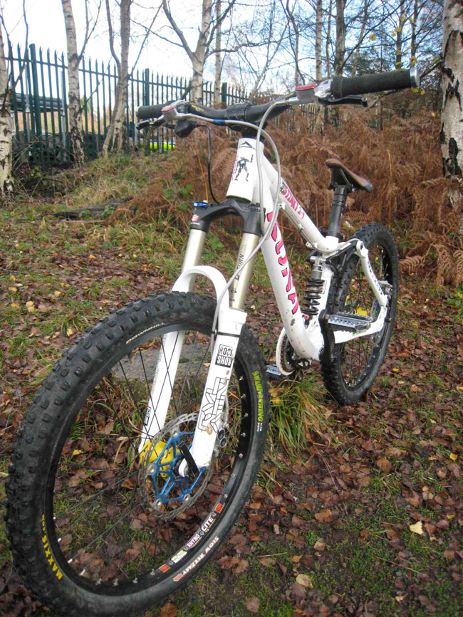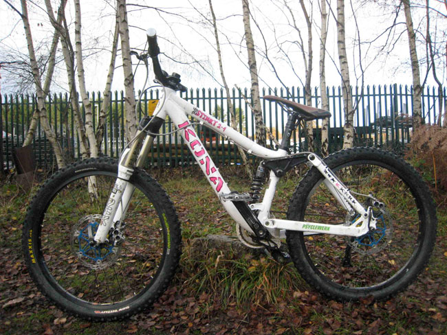 Laurie Greenland’s Kona, his dad says “Laurie’s bike was built by Psyclewerx who sponsored him last season and even tho he’s a titch and the only rider on 24″ wheels this bike got him to the podium at every round of Taff, all but 1 round of Caersws cup, English champs and his first and only national.
