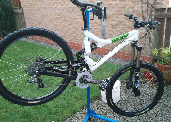 Says: “Bit of a unusual build for a 4x bike….but to be honest it rarely see’s a 4x track these days lol Use it more for DH and brapping around the local woods.”