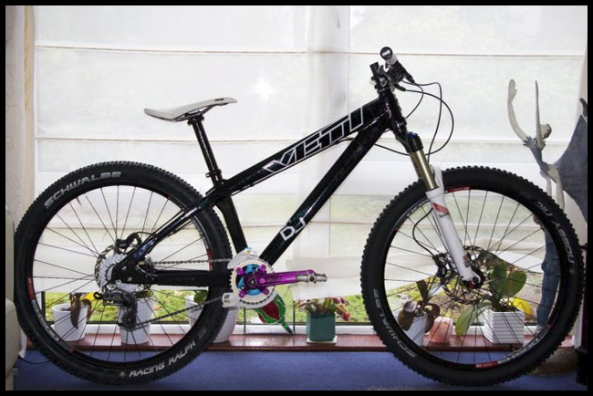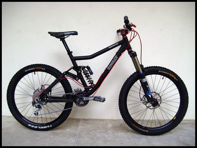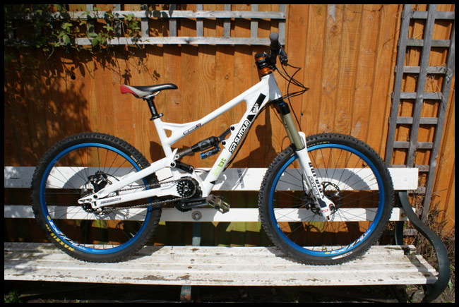 Its decked out with all the goodies, XO rear der, SAINT cranks, BOXXERS, Elixr mags and tubless wheels. Just waiting on the Ti spring. Its deadly silent and corners like a dream.