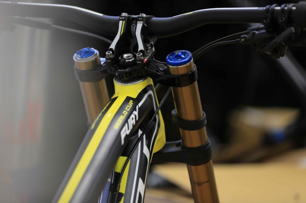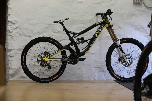 It’s no secret that the carbon Fury production bikes were heavily modified by the top riders which included headset cups and shock offsets. Still it was a good bike that had won the toughest race on the circuit – Val Di Sol – in the hands of Marc Beaumont.