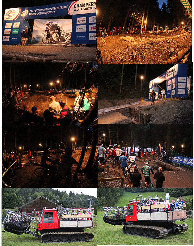 Lighting problems meant that the section into the finish area was out of bounds so riders were stopped just after the chairlift pole left hander.