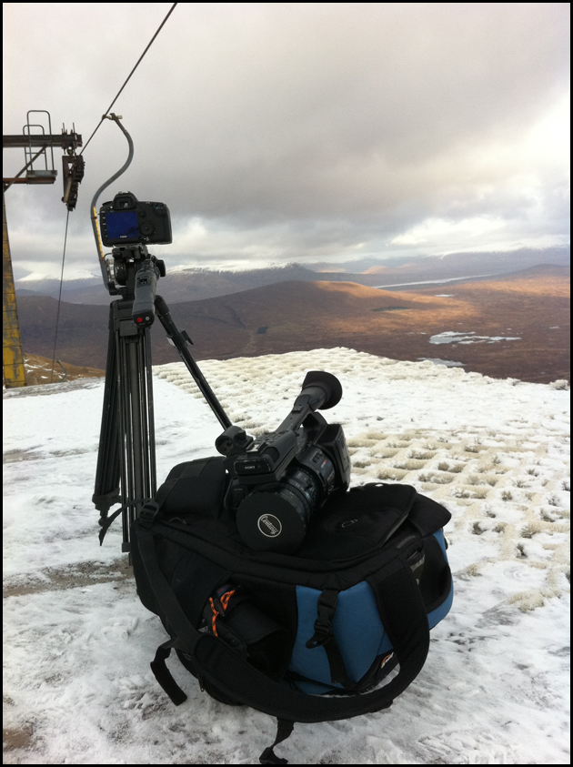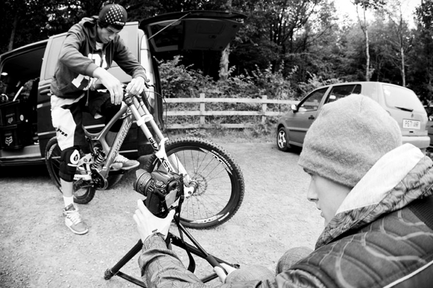 I shoot on a Sony EX1r, a Canon 5D mkII and a bit of GoPro action too. I’ve had the EX1r for a while and other Sony video cameras before that and they certainly out-perform a DSLR for shooting downhill riding, the combination of the zoom and the fact that the eyepiece allows 3 points of contact when operating freehand makes for a much tighter shot and a lot more variation in types of shot.