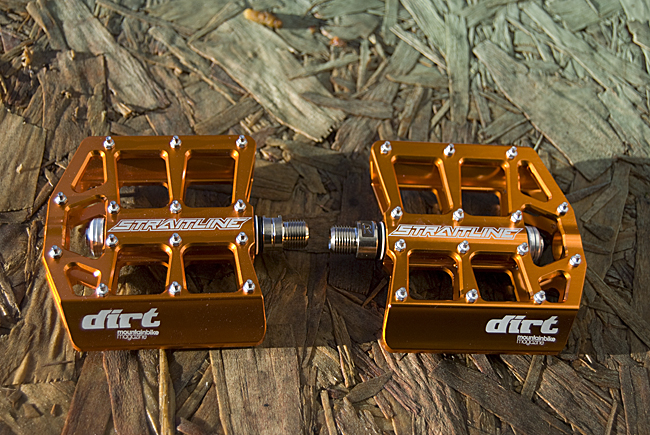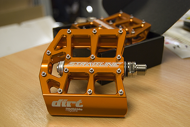 Super limited edition colour Straitline pedals, with the Dirt logo laser etched on there too.
