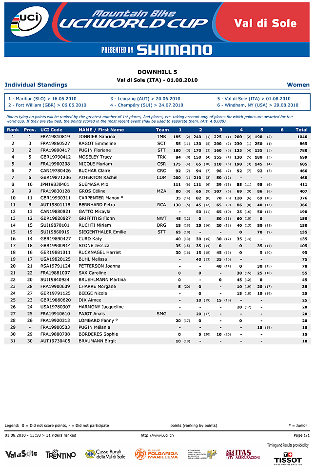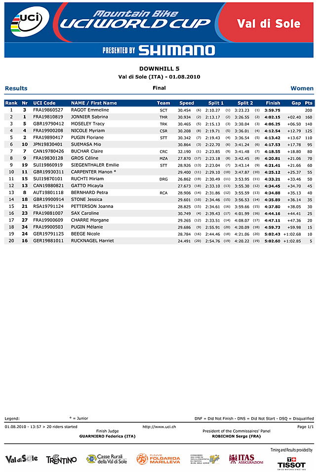 Emmeline Ragot wins Val di Sole World Cup:Full Results