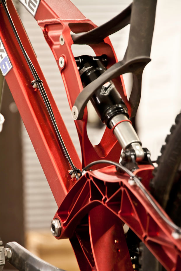 The MX-6 is packed with features that fully justify the cost of £2500 for the frame set or £4000 for a factory assembled bike. These include, ISCG 05 mounts; 150mm travel front and rear with Rock Shox suspension; 135mm or 142mm rear hub; and 2 x 10 drive train from Sram. Additionally, for those wanting to maximise performance through changing the fork angle, the geometry can be fully adjusted by simply changing the shock mounts.