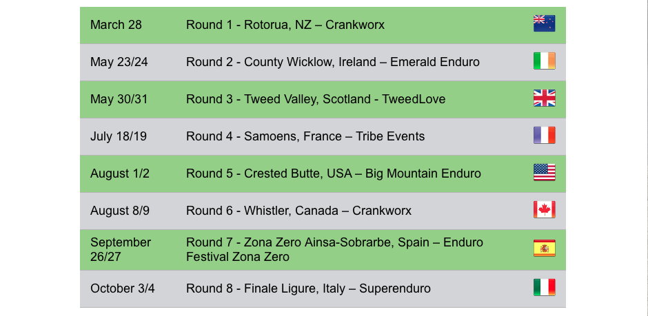 We’ve just had an email through from the Enduro World Series with the 2015 calendar, and it looks like next year will be just as good, if not better. There are a few notable changes – Chile’s not returning, New Zealand is new (and the only one south of the equator), and there are two back-to-back rounds – Ireland and Scotland, and the USA and Canada.