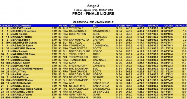 The top five order was mixed up a bit with 4 staying up there whilst Fabian Barel was pushed back by Remy Absalon. Maes was on another flier but flatted near the finish and even though he lost time managed to hold 3rd position. Nico Lau held it together and finished almost 10 seconds up on World Champion Clementz. Graves finished 4th after picking his was down the stage and avoiding any of the mechanicals that dogged his early season.