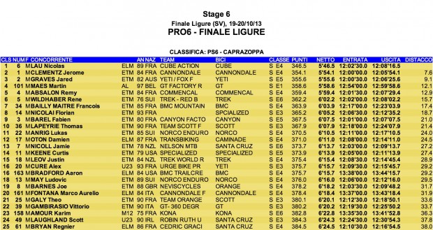 Enduro World Series: Finale Ligure Overall results