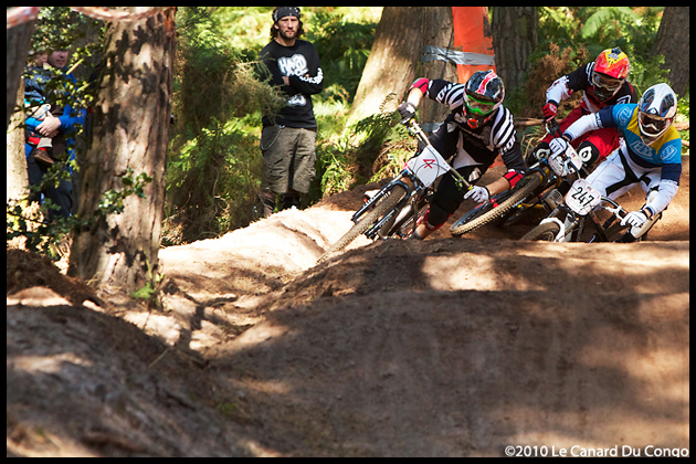 Team manager Dan Brown, Commencal engineer Nico Menard and spanner men Andy and Stevie all looking a bit shifty if you ask me.