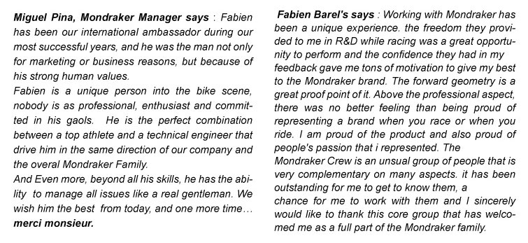 After five years together, Fabien Barel and Mondraker announce they are going their separate ways. Besides bringing Mondraker some great race results, and being an ambassador for the company Barel has been integral in the development aspect too, specifically with the Forward Geometry concept.