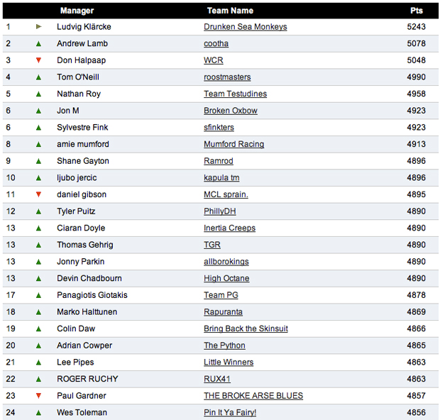 But in the end it was Ludvig Klärcke and his team, the Drunken Sea Monkeys who stayed sober long enough to manage his Fantasy team to perfection with 5243 points.
