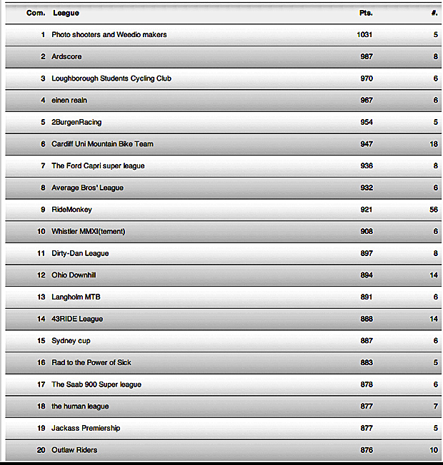 Top twenty teams from Fort William.