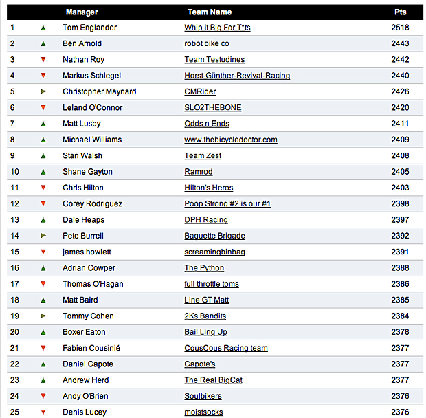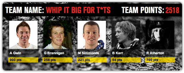 Tom Englander and his charming team “Whip it big for t*ts” are 75 points clear of second place Ben Arnold.
