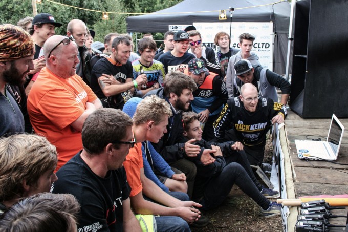 On the weekend that saw local legend, Josh Bryceland, take the World Cup overall, the Farmer John’s Race Weekend went off with its usual mix of fun events, a party atmosphere and of course, tight racing action. Riders rocked up to the venue early on Saturday morning, keen to get their tents pitched and crack on with the weekend. After a short practice session, the track was closed so Ratboy could take centre stage. Gathered around a small laptop, over 50 racers and marshals clamoured for a good spot to watch their hero claim his first World Cup overall. A massive cheer erupted as Josh crossed the line and the result left racers ‘peakin’ for the rest of the weekend.