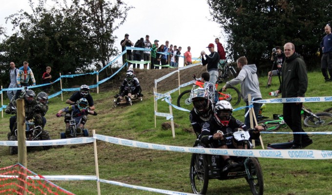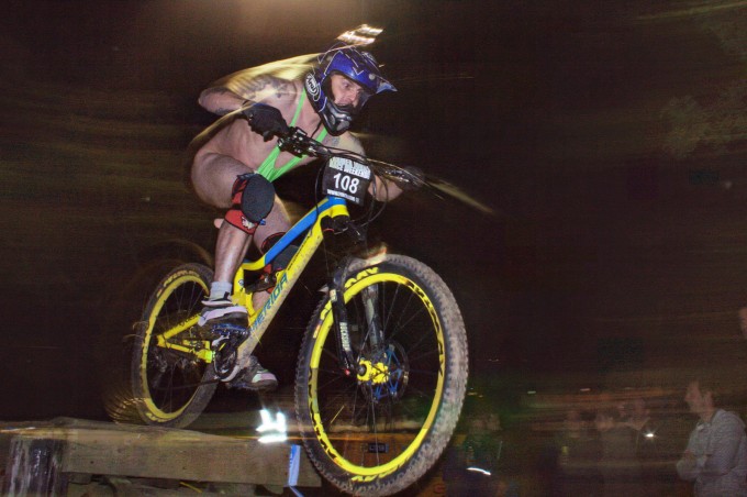 Next up on the Saturday was Bogey racing. The idea was to build a ghetto downhill trike and race it against other teams down a short slalom course. There were only six trikes entered, but the chaotic racing proved to be entertaining for the expectant crowd, who let’s be honest, were only really there for the crashes anyway. Before long, practice for the night race started. The track was short, but in the golden evening sunlight riders were happy to tear it up, and the sound of trains of whooping riders echoed down the valley as they chased each other down the flat out track.