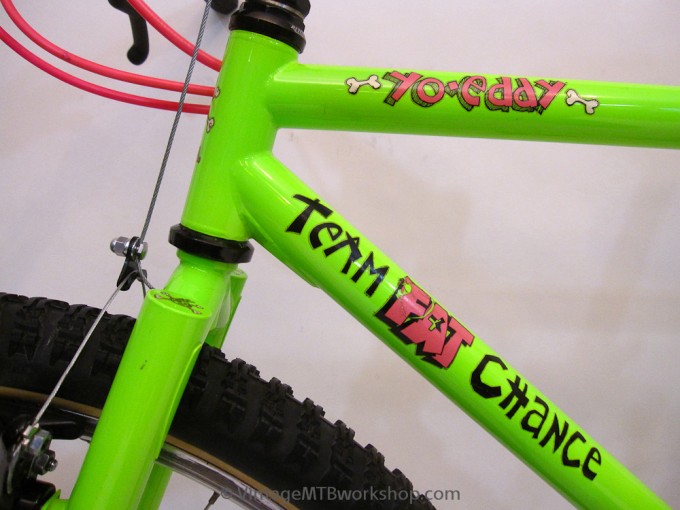 Of all his creations, the Yo Eddy team in about 1990 was perhaps best best known creation. Chance built a reputation because he produced mountain bikes with steeper angles, shorter chainstays and higher bottom brackets than the super slack bikes that were common at the time, and the Yo Eddy epitomised this approach.